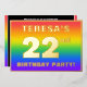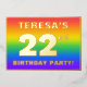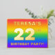 The front of this eye-catching and exciting twenty-second birthday party foil invitation card design features a personalised name, a large number “22nd”, the message “BIRTHDAY PARTY!”, and a border. The background of the front features an upbeat, colourful, rainbow spectrum inspired gradient pattern. The back features personalised details about the event, such as the date, time, location, and any other information that may be useful. Editable invitations like these might be a fun way to invite attendees to a birthday gathering/party being held in celebration of somebody’s 22nd birthday. [~Z0000599]