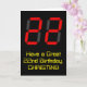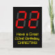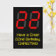 The front of this geeky and nerdy birthday-themed greeting card design features a large number "22" with a red seven segment digital display style appearance, along with the message "Have a Great 22nd Birthday," and a personalised name, on a black coloured background. The inside features a custom birthday greeting message, or could perhaps be cleared and left blank if a message is to be written by hand instead. A customisable birthday card like this might be a fun way to send birthday wishes to somebody who is celebrating their twenty second birthday. [~Z0000386]