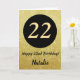22nd Happy Birthday Black and Gold Glitter Card with personalised name. For further customisation, please click the "Customise it" button and use our design tool to modify this template.