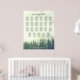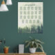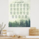This 23 table wedding seating chart features a rustic image of a mountain hillside covered with green pine trees and shrouded with mist or fog. The title reads "please find your table" in lacy script calligraphy. There is space for the couples' names and wedding date. This chart has table assignments for 230 guests 10 people per table. Perfect for an outdoor or wilderness destination wedding.