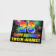The front of this cheerful, fun, and colorful birthday greeting card design features a large number "23" and the message "HAPPY BIRTHDAY,", both having a rainbow spectrum gradient inspired pattern coloring, along with a bold yellow editable recipient name. The front also has a multicolored background pattern inspired by bursting celebratory fireworks. The inside features a customizable birthday greeting message, or could perhaps be cleared and left blank if a message is to be written by hand instead. A cheerful customizable birthday card like this might be a fun way to send a message in celebration of somebody’s twenty third birthday. [~Z0000471]