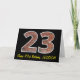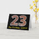 The front of this birthday themed greeting card design features a large number "23" with a brownish-red brick wall pattern, along with the message "Happy 23rd Birthday,", and an editable name. The inside features an editable birthday greeting message, or could perhaps be cleared and left blank if a message is to be written by hand instead. A personalized birthday card like this might be a fun way to acknowledge somebody’s twenty third birthday. [~Z0000399]