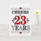 Black and white hues pair with a brilliant red in swirls and curls patterns on this typographic based birthday card for someone having their twenty-third birthday.