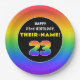 23rd Birthday: Colourful Rainbow # 23, Custom Name Paper Plate