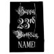 This luxurious and elegant birthday-themed giftbag design features the message “Happy 23rd Birthday,” in elaborate script style text, on a black colored background. It also features an editable recipient name. A gift-bag like this might be used when wrapping gifts being given to somebody in celebration of their 23rd birthday. [~Z0000557]