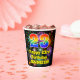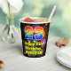 This cheerful and fun birthday themed paper cup design features a large number “23” having a rainbow spectrum gradient inspired pattern. It also features the message “Happy 23rd Birthday,”, and a custom name. The background features a multicolored pattern inspired by the look of bursting celebratory fireworks. Vibrant, colourful paper cups like this might be fun to use at a birthday party being held to celebrate somebody’s twenty third birthday. [~Z0000539]