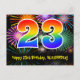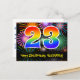 23rd Birthday – Fun Fireworks Pattern + Rainbow 23 Postcard