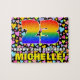 This eye-catching and bold birthday themed jigsaw puzzle design features a large number “23” with a multicolored rainbow spectrum inspired gradient pattern, along with the message “HAPPY 23rd BIRTHDAY,”, and a personalised recipient name. The background has an upbeat pattern of hearts having various sizes and colours. A fun, customised birthday puzzle like this might be a fun way to send birthday wishes to somebody who is celebrating their twenty-third birthday. [~Z0000611]