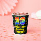 This colourful and joyful music-themed birthday paper cup design features a large number “23” with a rainbow spectrum gradient inspired pattern, along with the message “Happy 23rd Birthday,”, and a personalised name. The background features an exciting and colourful music notes and symbols pattern. Colourful, vibrant paper cups like this might be fun to use at a birthday celebration/party being held in celebration of somebody’s twenty third birthday. [~Z0000541]
