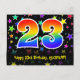 23rd Birthday: Fun Stars Pattern, Rainbow 23, Name Postcard