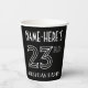 This stylish 1920s-1930s era inspired art deco look birthday themed paper cup design features a personalised name, plus the message “23RD BIRTHDAY PARTY!”. The number “23RD” has a fancy geometric lined appearance. Birthday themed paper cups like these might be used at a party celebrating somebody’s twenty-third birthday, or some other 23rd event. [~Z0000658]