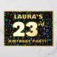 The front of this exciting and upbeat twenty-third birthday party/celebration foil invitation card design features a custom name, a large number “23rd”, the message “BIRTHDAY PARTY!”, and a border. The background of the front features a joyful, multicolored musical symbols and notes pattern. The back features personalised details about the event, such as the date, time, venue/location, and any other information that may be relevant. Personalised invitations like these might be a fun way to invite guests/attendees to a birthday party being held in celebration of somebody’s 23rd birthday. These might be extra special for a music-themed birthday party. [~Z0000601]