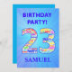 23rd Birthday party invitation. Add a name and your details to make a fantastic birthday party invitation. The numbers are made from words connected with birthdays to get everyone in the mood!