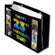 This cheerful and fun birthday gift bag design features the message “HAPPY 23RD BIRTHDAY,“ with a multicolor rainbow spectrum inspired gradient pattern, along with a customisable recipient name. The photos to the left and the right of the rainbow-patterned message on the front of the card can be personalised, perhaps with photos of the recipient, the recipient’s family and friends, and/or the sender(s) of the gift. A eye-catching giftbag like this might be used when giving a gift or present in honour of somebody’s twenty-third birthday. (Photography © Storytree Studios, Stanford, CA.) [~Z0000668]