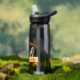 24 oz. Camel Back brand sturdy, durable, clear charcoal-colour plastic water bottle with the "Emotional Support Water Bottle" graphic prominently featured. Handwash preferred.