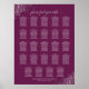 This beautiful wedding seating chart is simple yet elegant. It features a beautiful design of light grey text on a magenta, plum purple, berry, or cassis coloured background with lacy silver faux foil floral filigree in the corners. It includes table assignments for 240 guests with 10 guests per table.