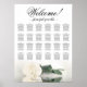 Transform your wedding reception into a luxurious affair with this captivating 24 table seating chart. The striking modern floral design showcases a single white, ivory, or cream coloured rose resting horizontally, reflecting in a tranquil pool of water. With seating for up to 240 guests and a classic layout of 10 seats per table, this chart offers ample space for your guests. The elegant calligraphic script title reads "Welcome! Please find your table," while the bottom section provides space for the couple's names and wedding date, adding a personal touch to your decor. This seating chart exudes a romantic, graceful, classy, and glamourous aura, making it the perfect way to elevate the style and class of your wedding reception while ensuring that your guests can easily find their seats.