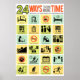 A visual guide/poster to remind you how you can find more time in your day and finally do those things you've been neglecting. Illustrating recommendations on time management, productivity, and life hacks.