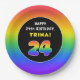 24th Birthday: Colourful Rainbow # 24, Custom Name Paper Plate