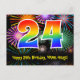 24th Birthday – Fun Fireworks Pattern + Rainbow 24 Postcard