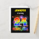 The front of this vibrant and fun birthday party invitation postcard design features a personalised name, an exciting bursting celebratory fireworks inspired pattern, and the message "24 YEARS OLD!" having a colourful rainbow spectrum inspired gradient pattern. The back features a customisable message that could include details about the birthday party, such as when it is happening and where it is being held. Invitation postcards like this might be sent to potential guests of a party being held to celebrate the birthday of somebody who is turning 24 years old. [~Z0000452]