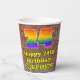 This fun and vibrant urban street art and graffiti themed birthday paper cup design features a large number “24” having a colourful rainbow spectrum gradient inspired pattern. It also features the message “Happy 24th Birthday,”, and an editable name. The background features a brick wall pattern. Colourful, vibrant paper cups like this might be fun to use at a birthday celebration being held in celebration of somebody’s twenty fourth birthday. [~Z0000543]