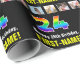 This cheerful and joyful birthday wrapping paper design features a large number “24“ having a multicolored rainbow spectrum inspired gradient pattern, plus the message “Happy 24th Birthday,“ and a custom recipient name. There are also photos that can be personalised, perhaps with photos of the recipient, the recipient’s family and friends, and/or the sender(s) of the gift. Birthday themed wrapping paper like this might be used when giving a gift or present in celebration of somebody’s twenty-fourth birthday. (Photography © Storytree Studios, Stanford, CA.) [~Z0000670]
