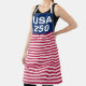 In celebration of America's 250th birthday, a blue field is at the top with USA and 250 in white text. Red and white stripes are across the bottom that are reminiscent of the American flag.