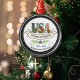 Celebrate the 2026 Semiquincentennial with this classic white-faced silver metal ornament. Featuring our original botanical watercolor "USA" artwork and a star-studded border, this high-end commemorative keepsake honors the 1776–2026 milestone. Its crisp, clean aesthetic makes it a timeless heirloom gift for historians and patriots alike.