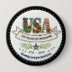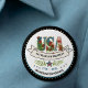 Celebrate the 2026 Semiquincentennial with this designer boutique button. This version features a crisp white background, a custom-designed black star border, and our signature botanical watercolor "USA" artwork. With the historic 1776–2026 milestone and a "4th of July" banner, this commemorative pin is a stylish way to show your American pride.