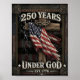 Celebrate America's 250th anniversary with this powerful faith-based patriotic design! Featuring a weathered wooden cross draped with the American flag, rustic barn wood framing, and "We The People" script at the top, this design beautifully combines faith, freedom, and heritage. The distressed vintage aesthetic with lightning accents and "Under God" messaging honors the spiritual foundation of the United States since 1776.