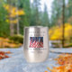 250th Anniversary 1776 to 2026, United States of America, insulated stainless steel thermal tumbler. America 250 - A great milestone for the USA! Photo of American flags waving in the wind, and patriotic text make this a wonderful commemorative keepsake - a once in a lifetime event! Meaningful Christmas heritage gift to bring to picnic for Independence Day, 4th of July, Veterans Day or other patriotic holidays. Available in several colors and styles; default is stainless steel wine tumbler. All Rights Reserved © 2026 Alan & Marcia Socolik.