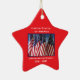 250th Anniversary 1776 to 2026, United States of America, Christmas Tree Ornament. A great milestone for the USA! Photo of American flags waving in the wind, and patriotic text make this a wonderful keepsake - a once in a lifetime event! Great Christmas premium star shape ornament. All Rights Reserved © 2025 Alan & Marcia Socolik.
