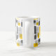 An original hand drawn retro modern style design made up of dark grey rectangles of lines or stripes with patches of a lighter grey with a colour.