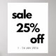 25% Off sale sign in black and white with customisable dates. Designed in a sleek minimalist style. Perfect for retail stores and boutiques.