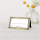 Compliment black and gold party decorations with elegant name and table number folded place cards. To use as escort cards, set on a table near the entrance for guests to pick up and take to their seats, eliminating the need for a separate seating chart. The event title and date on back are simple to personalize or delete. The colors and font styles are easy to change with the Zazzle Design Editor tool. The modern black, gold and white design features a stylish faux foil striped border and classic vintage art deco typography. Please note that the gold is printed gradient color with slightly darker edges, not metallic foil. These place cards add an elegant unique touch to a special celebration, such as a wedding reception, milestone birthday or anniversary party.