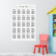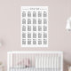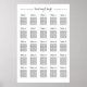 Up to 25 Table layout, laid out by table number, not names, with up to 12 people per table. A simple black and white seating chart; click "customise it" to move columns, change fonts, colours, background colour or size of poster. White text on coloured versions also available. Click and drag over tables, (starting from off the page) to move more than one table at a time.