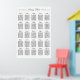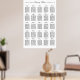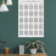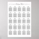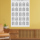 Up to 25 Table layout, laid out by table number, not names, with up to 12 people per table. A simple black and white seating chart; click "customise it" to move columns, change fonts, colours, background colour or size of poster. White text on coloured versions also available. Click and drag over tables, (starting from off the page) to move more than one table at a time.