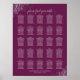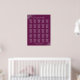 This beautiful wedding seating chart includes table assignments for 250 guests with 10 guests per table. The design is simple yet elegant featuring light gray text on a magenta, plum purple, cassis, or berry colored background with lacy silver faux foil floral filigree in the corners, and calligraphy script reading: please find your table.