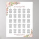 This 25 table wedding seating chart features a rustic boho chic design with hand painted watercolor roses and blossoms in shades of blush pink, coral, peach, and mauve along with sprigs of eucalyptus leaves and garden greenery. The traditional layout has space for 250 guests with 10 seats per table. There is an elegant script calligraphy title and space for the names of the couple and wedding date at the bottom. Beautiful way to add elegance, style, and grace to your wedding reception while making it easy for your guests to find their seats.
