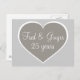 25 years silver and white heart silver anniversary postcard