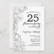 Black White Floral 25th Wedding Anniversary Party Invitation. Minimalist modern design featuring botanical outline drawings accents and typography script font. Elegant invite card perfect for a stylish celebration. Can be customized to any year of marriage. Printed Zazzle invitations or instant download digital printable template.