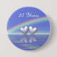 Pin with my design of silver hearts floating on the water under a rainbow with customisable text that says "25 Years".