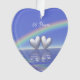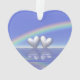 Ornament with my design for 25th Anniversaries of two silver hearts reflected in the water with a rainbow above. Text says "25 Years".