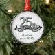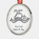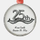 The centerpiece of this design features the text "25th Anniversary" in silver and black. Customisable text is available for the happy couple's name and anniversary date. This item makes an ideal party favour for that special anniversary party.