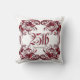 Ornamental frame design in burgundy and white throw pillow for 25th Anniversary gift.