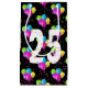 Colourful 25th birthday balloon bouquets with party confetti on black background.