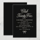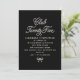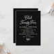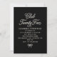Elegant black and white invitation features white pearl script and a tiny pearl bow on a black background. Club Twenty-Five gives it a hip, trendy vibe, while the bow at the bottom adds elegant femininity.