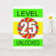 25th birthday card for a video gamer. Any computer gamer will love this card. With the slogan Level 25 Unlocked, this is sure to get a big grin from anyone who loves playing computer games.