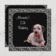 Invitation Birthday Event Party Celebration announcement, Animal Abstract Print Frame with black background and Black & white Dalmation puppy with red bow tie. Customise for any event.